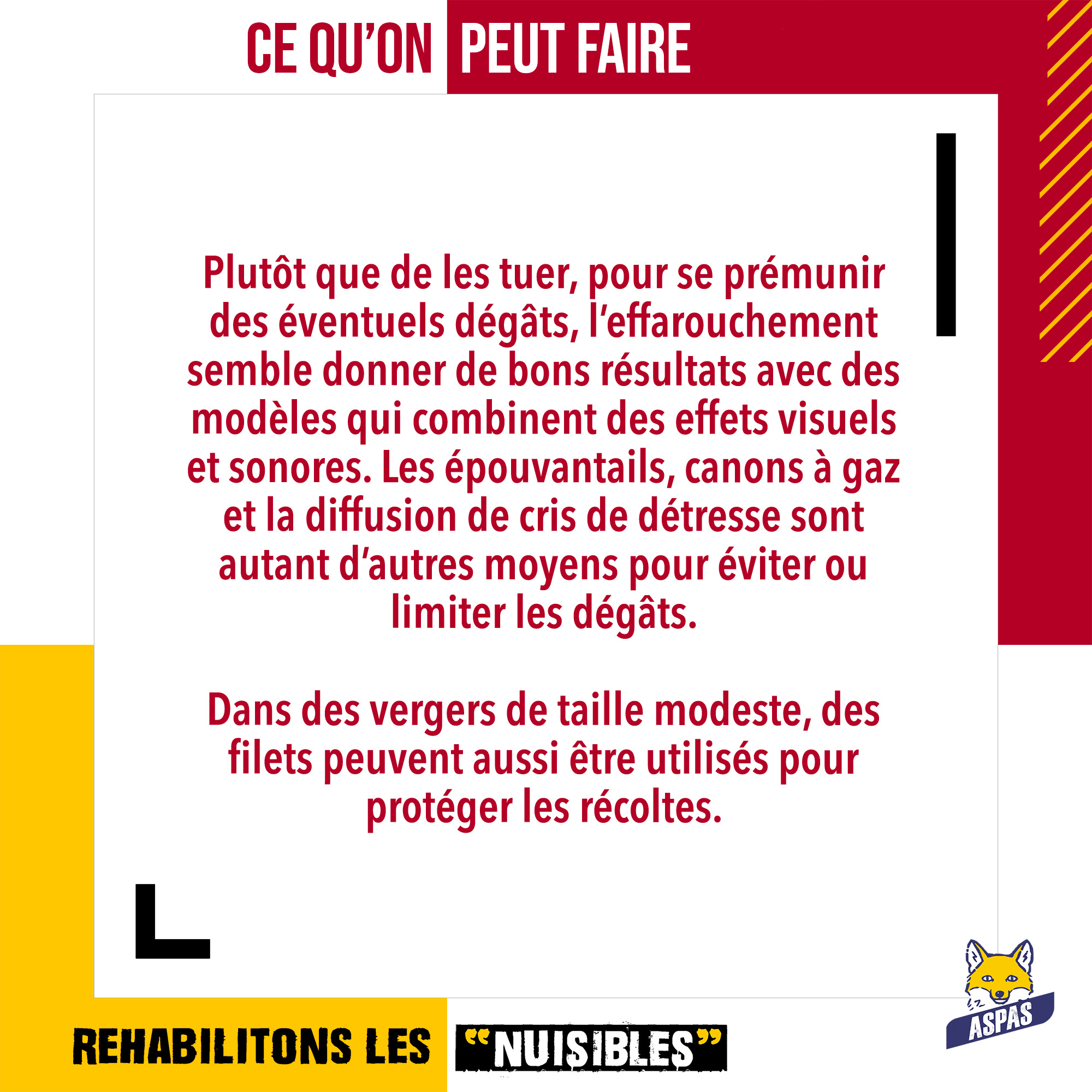 Pour alerter sur l’aberration écologique de la dernière liste des “Espèces susceptibles d’occasionner des dégâts” (ESOD), valable jusqu’en juillet 2026, l’ASPAS a mené une campagne de sensibilisation sur les réseaux sociaux. Retrouvez toutes les publications de cette campagne sur cette page.