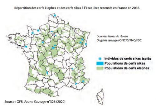 L’enquête de l’OFB révèle par ailleurs qu’en 2018, cerfs sika et cerfs elaphe vivaient en « sympatrie » sur au moins 16 communes dans 9 départements : les Alpes-de-Haute-Provence (04), le Cher (18), l’Isère (38), la Loire-Atlantique (44), le Loiret (45), le Lot (46), la Sarthe (72), la Seine-et-Marne (77) et les Vosges (88).