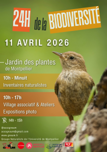 Cette année encore, le GNAUM (Groupe Naturaliste de l’Université de Montpellier) organise les 24H de la Biodiversité au Jardin des Plantes, qui aura lieu le ✨ samedi 11 avril 2026 ✨