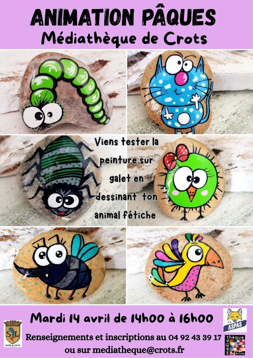 La délégation ASPAS 05 et la médiathèque des Crots vous propose une animation de peinture sur galet pour petits et grands à la médiathèque de Crots de 14h à 16h.