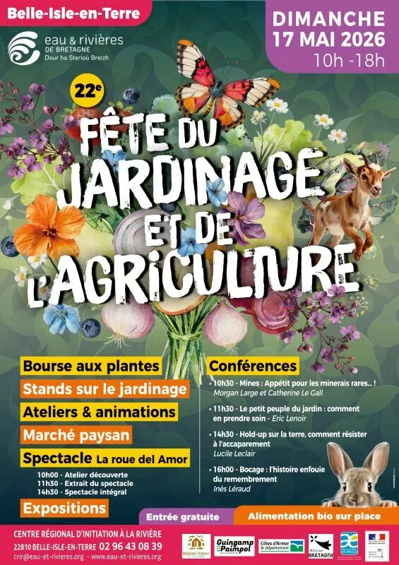 Chaque année, la Fête du jardinage et de l’agriculture a lieu à Belle-Isle-en-Terre. Sa 22 ème édition aura lieu le 17 mai 2026 au Centre d’initiation à la rivière à Belle-Isle-en-Terre pour une journée conviviale et pleine de découvertes !