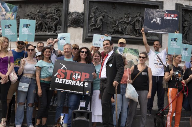 À Paris, un temps fort organisé par l’ASPAS était l’occasion pour tous les partenaires de la Journée de se retrouver place de la République, où un public nombreux est venu assister aux différentes animations, dont une scène de déterrage fictive assurée par Hadi, l’ami des Lobbies avec son immanquable cravate rouge. L’acteur s’était déjà attaqué en 2021 à la vénerie sous terre via une vidéo satyrique en collaboration avec l’ASPAS (à voir ou à revoir ici).