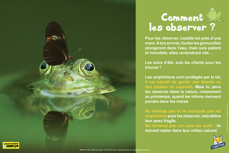 • Un dépliant amphibiens destiné aux adultes « Comment protéger les amphibiens ? »