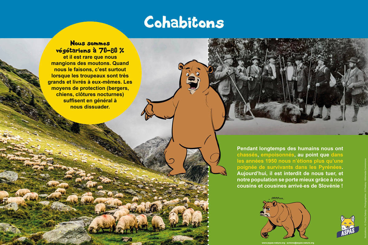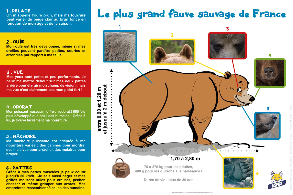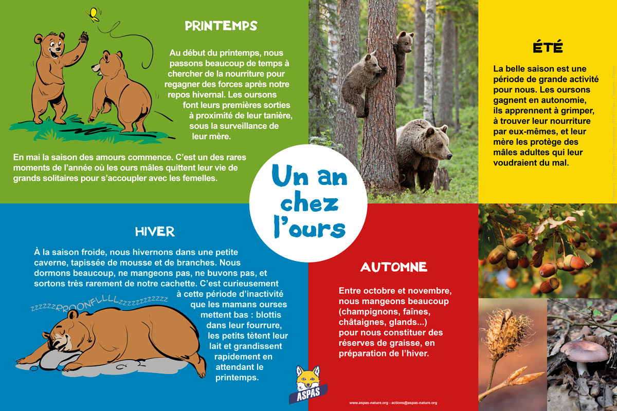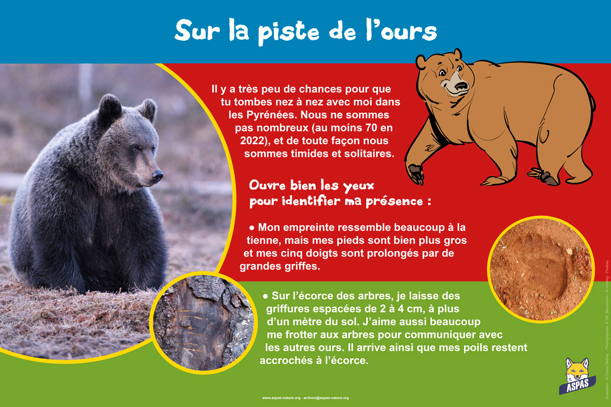 L’ASPAS met gratuitement à disposition des écoles, clubs nature ou centres d’animations le kit de sensibilisation « J’aime les ours ! », dans la limite des stocks disponibles. Composé d’une exposition de 8 panneaux (60 x 40 cm) et de dépliants pour les enfants, ce kit permettra de mieux faire connaître notre patrimoine naturel et d’engager le débat sur la cohabitation avec la faune sauvage.