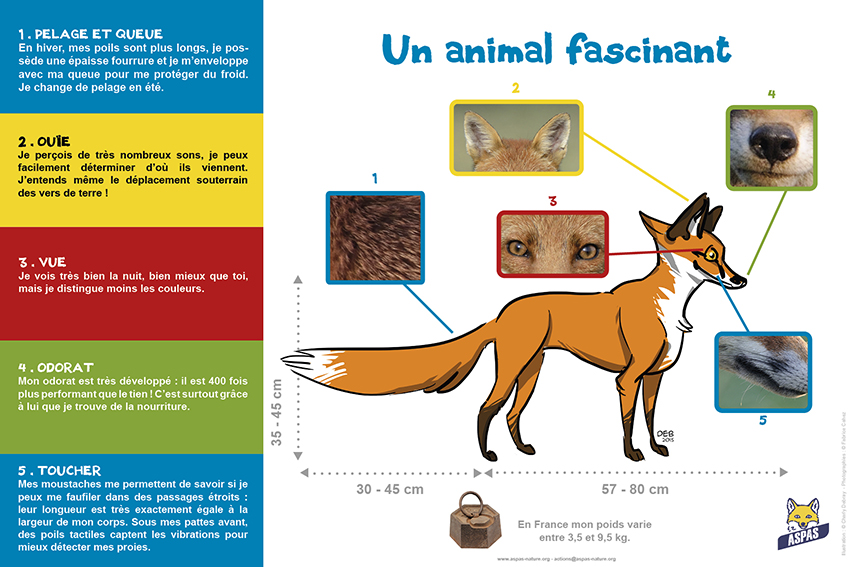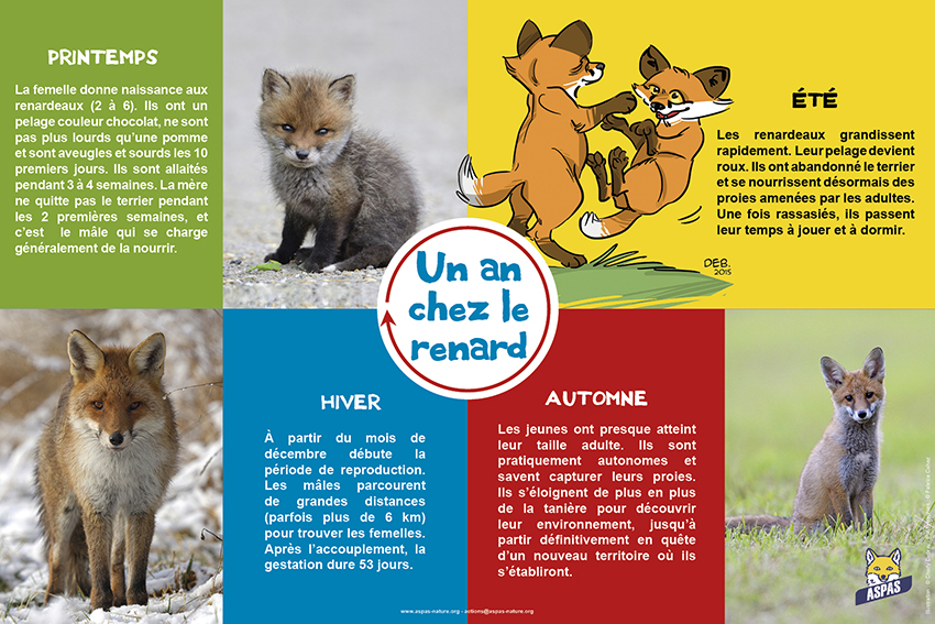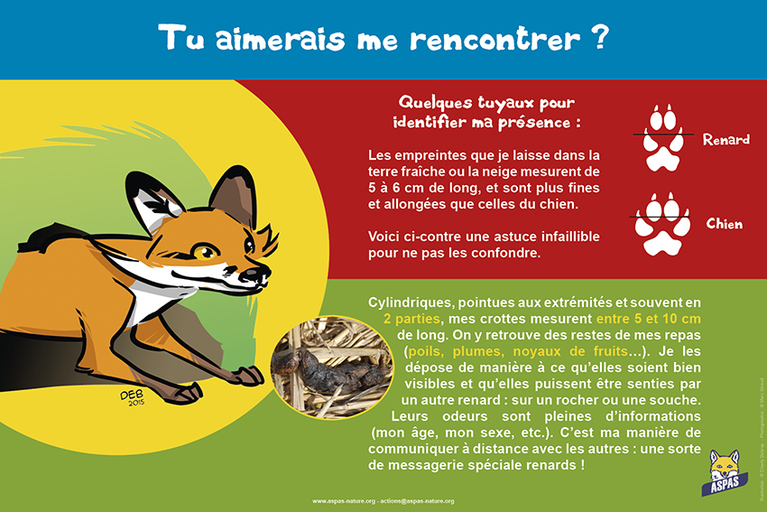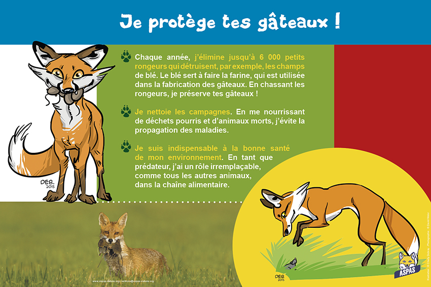 L’ASPAS met gratuitement à disposition des écoles, clubs nature ou centres d’animations un kit de sensibilisation « J’aime les renards ! », dans la limite des stocks disponibles. Composé d’une exposition de 7 panneaux (60 x 40 cm), de dépliants pour les enfants et d’une documentation supplémentaire pour l’enseignant / animateur, ce kit permettra de mieux faire connaître notre patrimoine naturel et d’engager le débat sur la cohabitation avec la faune sauvage.