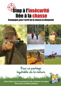 L’ASPAS appelle à une trêve de la chasse le dimanche, car c’est aujourd’hui la seule mesure susceptible de garantir la sécurité et la tranquillité de tous.