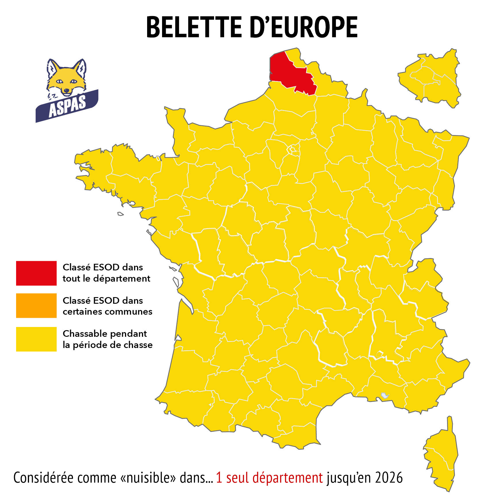 Quant à la belette, on se demande bien pourquoi le Pas-de-Calais continue à se ridiculiser en tant qu’unique département de France à vouloir s’acharner sur le petit carnivore 3 années de plus… Pourquoi ce département est-il le seul à ne pouvoir se protéger efficacement d’un petit mammifère d’une centaine de grammes ?
