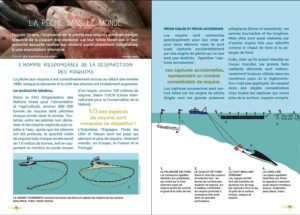 Cette brochure présente également la biologie des requins et met à mal les fantasmes qui les entourent. Elle expose l’urgence de leur protection face à la disparition alarmante de ces espèces largement surexploitées et persécutées à tort. Aujourd’hui, 1/3 des espèces de requins sont menacées dans le monde !